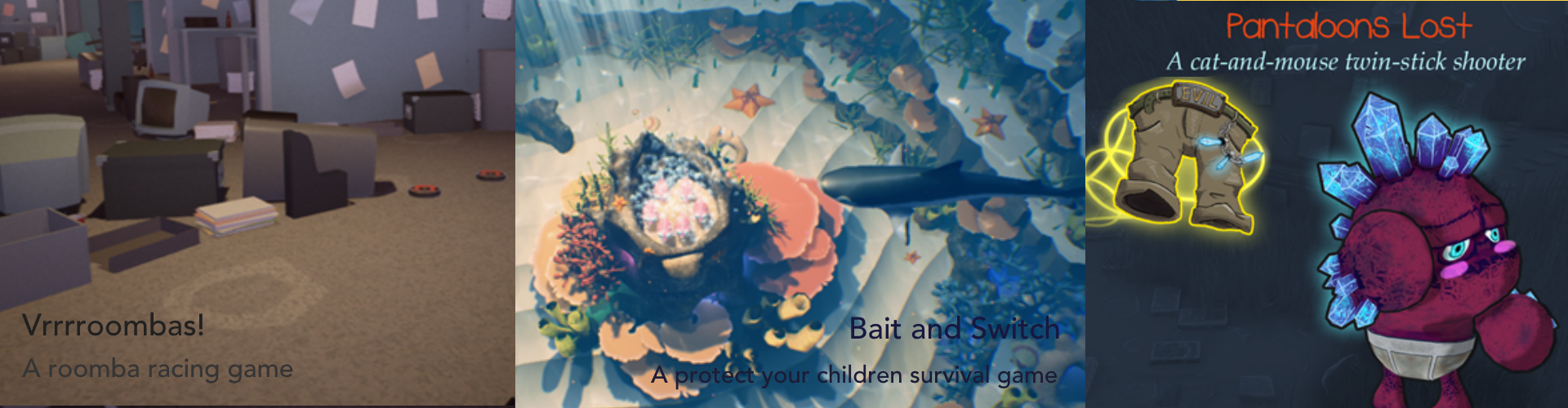That idea resulted in Vrrrroombas!. A roomba racing game set in a post party office. The employees set up a track through the office that the roombas had to race through.
